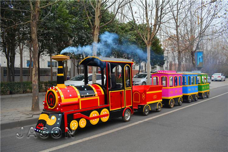 Trackless train manufacturer Jason's trackless train rides the train materials are FRP and steel. The structure is mainly steel, and the shell of the train is made of glass fiber reinforced plastic. According to customers' requirements and preferences, we can design the color matching of products and the overall theme design of the equipment. All paints are automotive paints, and the equipment is beautiful in appearance, colorfast, and anti-corrosive.